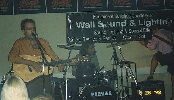 The Fruvous show (people have posted the set, I don't really remember) was good, high energy (for us people dancing, anyway). Jian screwed up the lyrics to GE&H so royally, it was funny, but I've already described that in another post, so I'll assume you know what happened. Chopper McKinnon, a local radio host, rained on our parade a little by telling us that we shouldn't dance (the stage was five feet high! We were blocking NO ONE!) and the next day accused us of trying to steal stuff from the stage. My dad thought he was way over the top, and is coaxing me to write a letter to the Ottawa Citizen about what he did. I probably will, too.