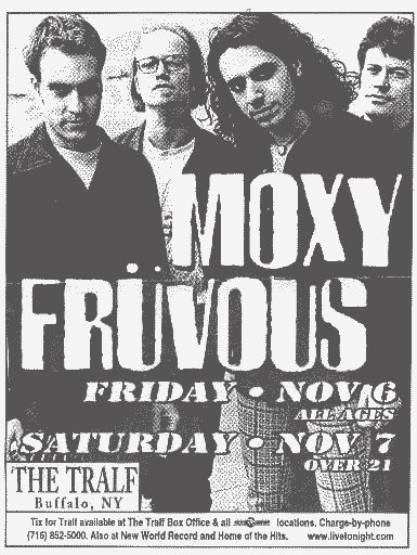 Opening: Extended Sahara: It was really great to hear this. I kinda missed it. It was rocking as usual. Half as Much: Another great song, I hadn't heard in a couple of shows. I am really begining to like this song. It really has grown on me. Jockey Full o' Burbon: I Love this song!!! (although I could concievably say this about every song they do) I Love My Boss: Excellent (I'm probably gonna run out of Positive Descriptive words soon) Stuck in the 90's: with George Pataki reference. Jian opened the song talking about how there isn't really much of a difference between Republicans and Democrats Horseshoes: With the Piano again!!!! I really wish every place they played had one. I love it! Grudge: A New Song!!!! This song also had Mike on the Piano. Murray sang lead for most of the song. I really can't describe it, except to say it was really Great! I hope they will play it in the next few shows. (After the guys asked what we thought of it. Lots of applause. Then Mike asked how we would like it if they speeded it up, and added Congo's. Some more applause. Mike replied: wrong Answer) Darlington Darling: I'm not used to hearing this song until the end, so it caught me off guard. Cheek to Cheek: A great song with Dave on Piano. I really felt like dancin'! Sad Girl: With the piano once again. I really hope this song gets on the new album. If it doesn't, I'll be really Sad. Pisco: I was going to try and spell Bandito, but its 230am, and I prolly spelled it wrong. I tried showing my friend the Pisco Dance, but I didn't convey it very well. Cross Boarder Shopping: Yey!! They mentioned they weren't sure if they'd remember all the words, but It came out great. They also mentioned the decreasing value of the Canadian dollar, and that it was cheaper to go to the Duty Free Shops at the boarders. Spider Man: Mike got up on the Piano Bench for the start of this one. BooTime: With references to Buffalo and Live Noise. (Buffalo Lyrics being the same ones from the version on Live Noise. ) Michigan Militia: Banjo Time!!! Present Tense Tureen: I love the Banjo. I really need to get one and learn to play it. Johnny Saucepan: (insert favourite positive discriptive word!) I Will Hold On: I love this song. Jian had trouble starting the song. I don't know if he forgot the words, or had problems hearing Dave or what. They ended up stopping and then bantering about how their tele-promters stopped working. After all that they played the song! River Valley: I can't even tell you the last time I remember hearing this song. Get In the Car: Good. I don't think they broke any Guitar strings tonight on this song. END: Psycho Killer: They did break one on the Les Paul here though. Encore 1: Homeward Bound: I can't believe I've heard them do this song 3 times within the last 5 shows I've been to. It was just Jian and Mike. King of Spain: The crowd really got into this one. With Sabres References. Encore 2: Allison: I love this song. It's my favourite non-Fruvous tune. The only song that was missing from the Iron Horse shows. Incredible! At the end, Cal started to play the King of Spain Remix, but Jian motioned for him to stop. Encore 3: Substitute: Wasn't supposed to be played. Jian meant that he just didn't want the KOS remix, not that the show wasn't over. I wasn't complaining!
