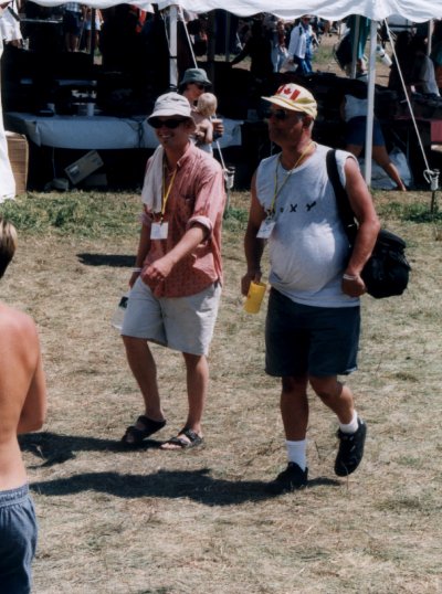 Friday night we chatted with other fruheads (our camp was near cee, Leah, Richard, Christy, etc...) and caught EFO's mainstage set, as well as The Nields (if I remember correctly, Jian joined in on the drums during one encore number). Didn't get to sleep on Friday till about midnight or so. Woke up Saturday morning around seven, saw some of the early workshops, including 'Love Songs of the Millennium', which included Moxy. There were too many bands crowded into one workshop, IMO. But, nonetheless, Fruvous did very well, performing their new 'killer tents' song, which everyone LOVED.