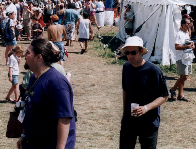 We went up Thursday evening and had a decent time. Friday was the real problem. As it turned out, it didn't rain, but the heat and the humidity + no shade meant that it was almost totally unbearable unless you were really into the music (even then, it was a big downside). That wasn't really the main problem, though. Without anything else, we could have dealt with it. The problem was that it was *crowded*, way past what the grounds could comfortably hold. We tried camping, which, of itself, wasn't bad at all. The problem was, that by Friday night, there were many tents packed into the grounds where we were, and they didn't seem to have any interest in the festival. They stayed at the campground, partied until about 4 am, and had their own stereo on loud enough that it drowned out the music which was otherwise pretty clear, even that far away. This is what did it. We just couldn't deal with that (not getting any sleep due to noise and crowd), and decided today (Saturday), to stay for the first Fruvous workshop and then head home. There were just too many people, probably due to Ani. Two years ago, about ten thousand people fit comfortably and a great time was had by all. This year, they were expecting about 28,000, and the grounds just aren't big enough to hold that much.